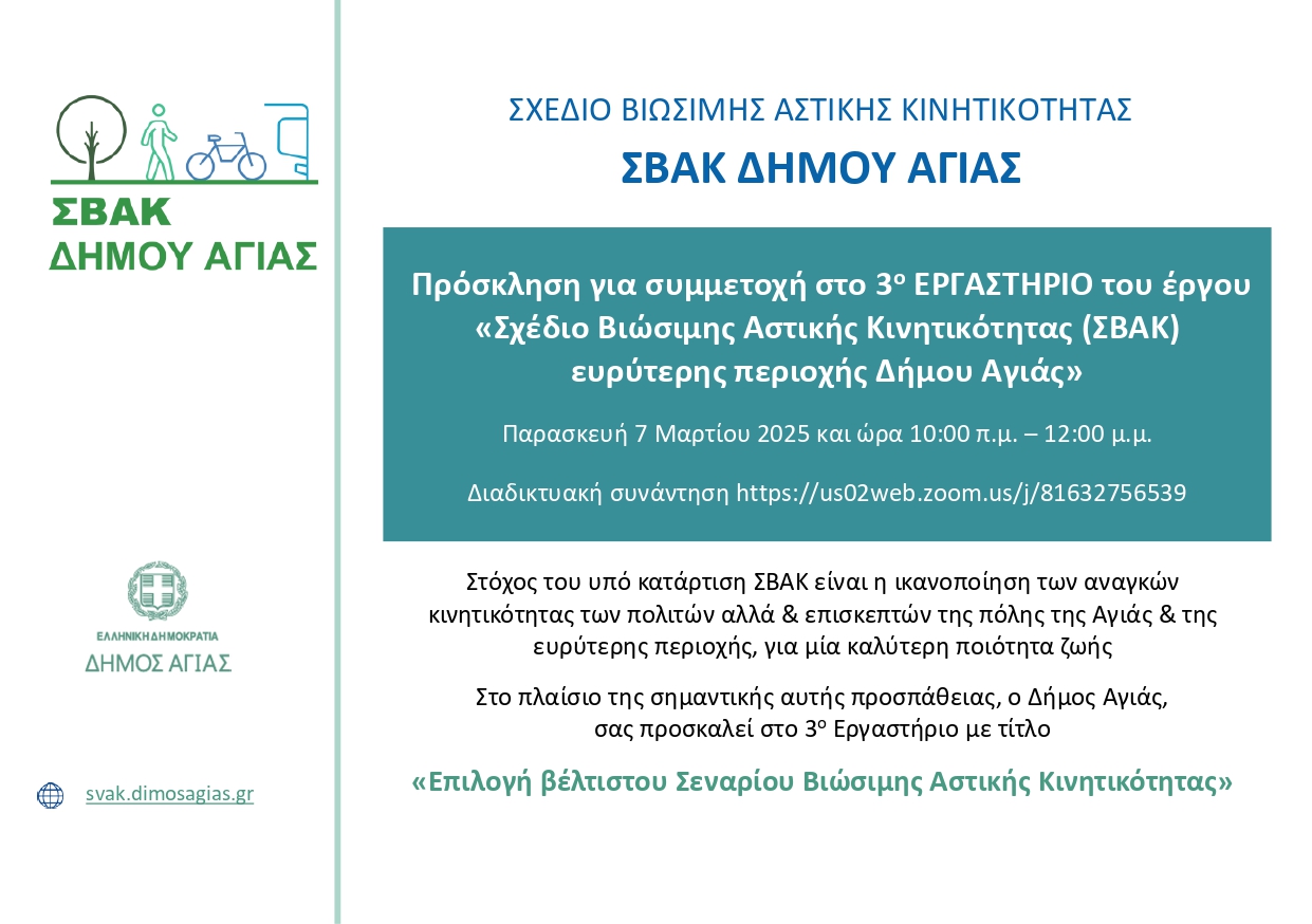 Ο Δήμος Αγιάς, η Διεύθυνση Κοινωνικής Πρόνοιας, Παιδείας, Αθλητισμού, Πολιτισμού κι Εξυπηρέτησης του Πολίτη, σε συνεργασία με το Κέντρο Κοινότητας, το Κέντρο Υγείας Αγιάς, το ΚΕΘΙ, το Αστυνομικό Τμήμα Αγιάς, τη Μουσική Σχολή Αγιάς και τη Θεατρική Ομάδα Μαθητών του Γυμνασίου Αγιάς, διοργανώνουν μια σημαντική δράση με θέμα: «Ενδοοικογενειακή Βία κατά των Γυναικών» τη Τρίτη […]