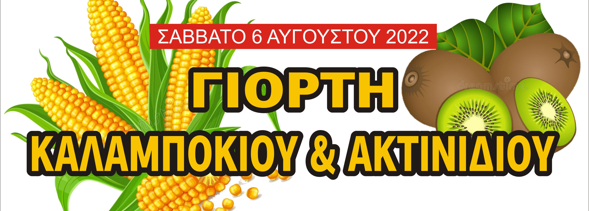 Σας προσκαλούμε να τιμήσετε με την παρουσία σας, την Γιορτή Καλαμποκιού και Ακτινιδίου, που διοργανώνεται από τον Δήμο Αγιάς σε συνεργασία με την Περιφέρεια Θεσσαλίας, τον Πολιτιστικό Σύλλογο Ομολίου «Μ. Αντύπας», τον Δασικό Συνεταιρισμό Ομολίου και την Κοινότητα Ομολίου, στις 06 και 07 Αυγούστου 2022 στο Ομόλιο