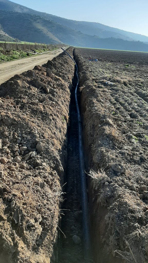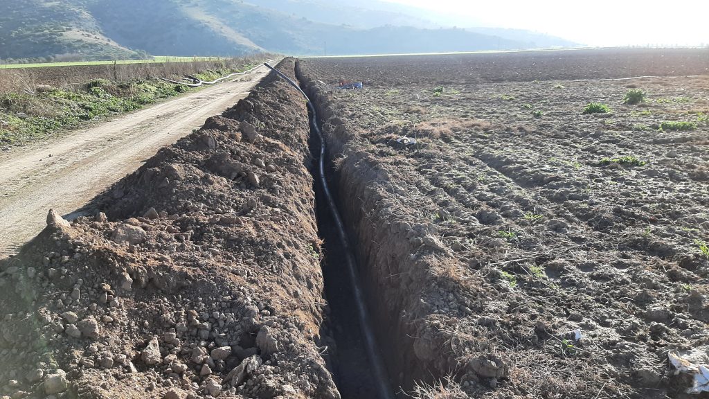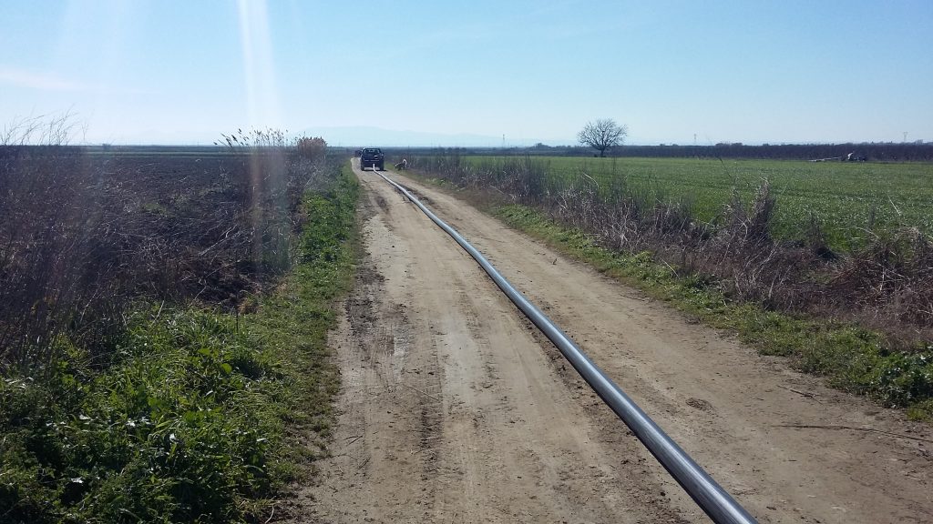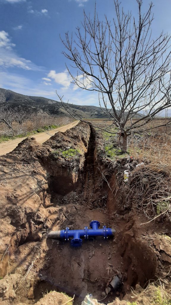 Ολοκληρώθηκε η αντικατάσταση υφιστάμενου επιφανειακού αρδευτικού δικτύου (αποτελούμενο από χαλυβδοσωλήνες με ταχυσυνδέσμους) στην ΤΚ Μαρμαρίνης με την κατασκευή υπόγειου δικτύου, διατομής Φ110, 10 Atm από PΕ συνολικού μήκους 3000m περίπου, εξυπηρετώντας συνολική έκταση 1.500 στρεμμάτων μειώνοντας έτσι τις απώλειες σε αρδευτικό νερό και το κόστος παραγωγής.