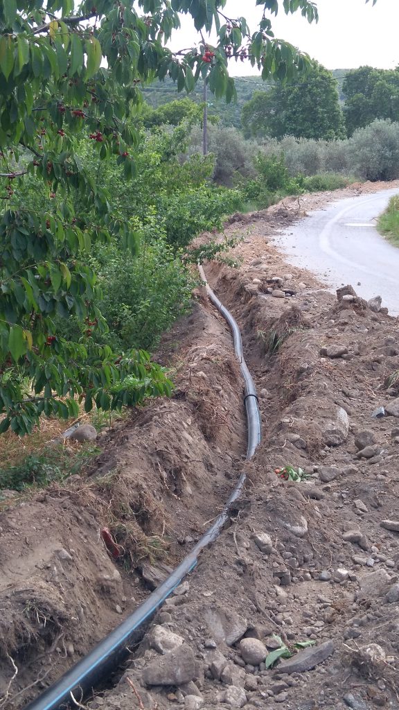 Το εν λόγω έργο ολοκληρώθηκε πέρυσι και αντικατέστησε πλήρως τον παραδοσιακό τρόπο άρδευσης των καλλιεργειών από τον υφιστάμενο τσιμενταύλακα, με σύγχρονες μεθόδους άρδευσης που αποτελείται από κλειστά υπό πίεση δίκτυα, αντλιοστάσιο, δεξαμενή καθίζησης και λιμνοδεξαμενή αποθήκευσης του νερού.